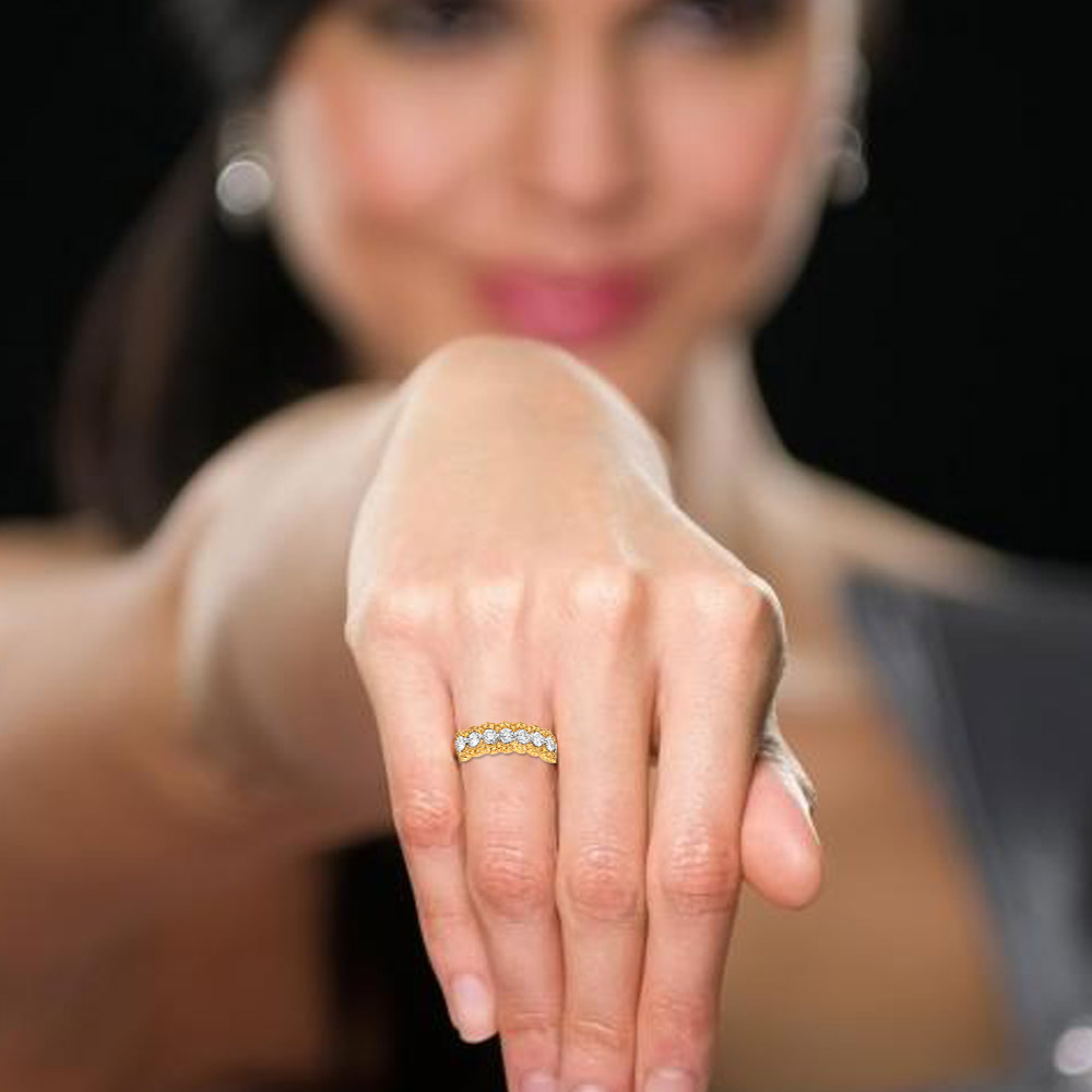 Classic and timeless, this diamond eternity ring features a continual band of round diamonds all set in enduring platinum.