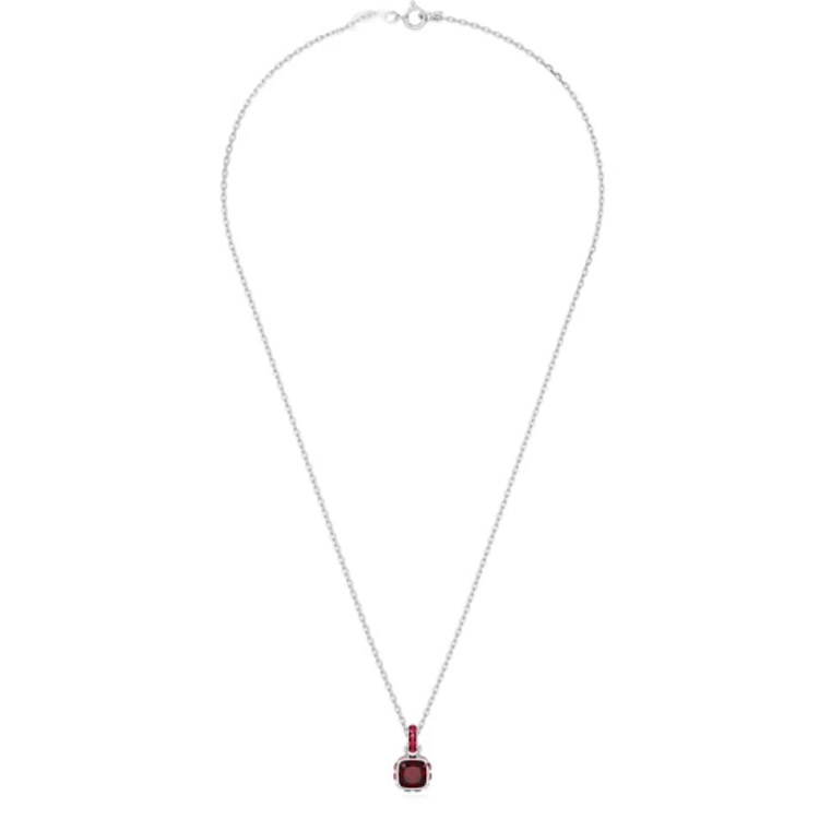 RD Fashion Necklace with 7mm Cushion Garnet in 18-inch White Gold Chain