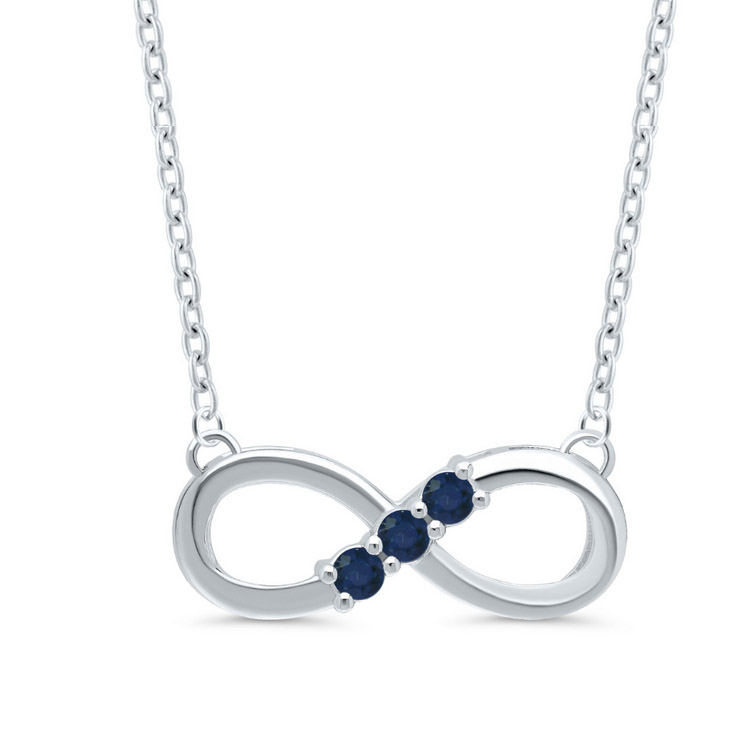 .75ctw Blue Sapphire 3 Stone Infinity RD Fashion Necklace in 14K White Gold