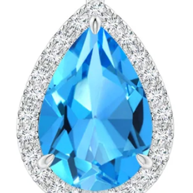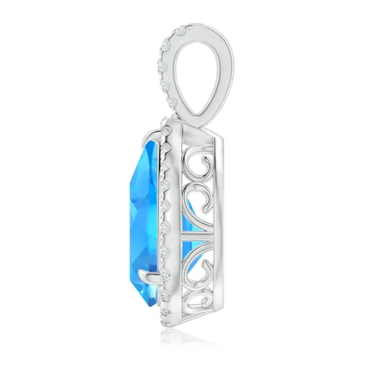 3.17ct Swiss Blue Topaz Teardrop Pendant with Diamond Halo in 18K White Gold