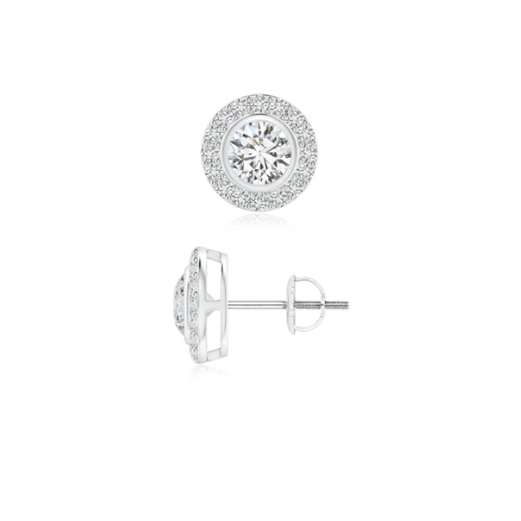 HA Collection 3.17ct Solitaire Bezel-Set Round Diamond Halo Stud Earrings in 18K White Gold