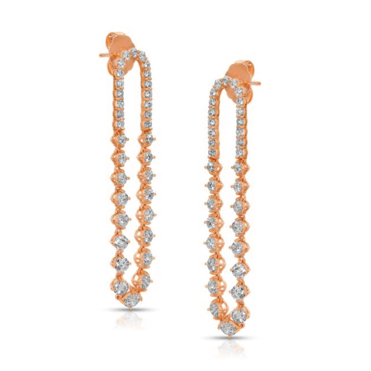 HA Collection 3.17ct Round Cut Diamond Dangle Earrings in 18K Rose Gold