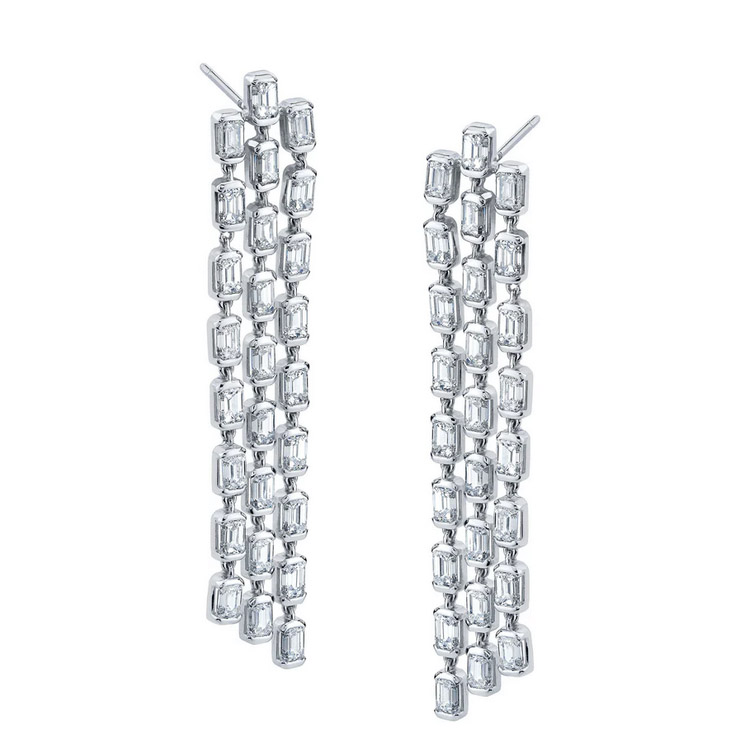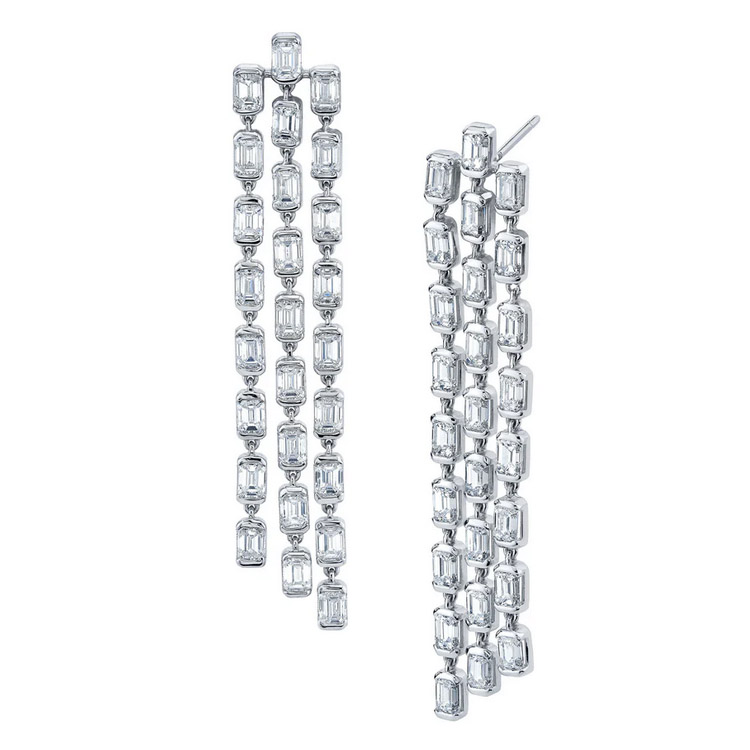 HA Collection 8.16ct Emerald Cut Diamonds Dangle Earrings crafted in 18k white gold
