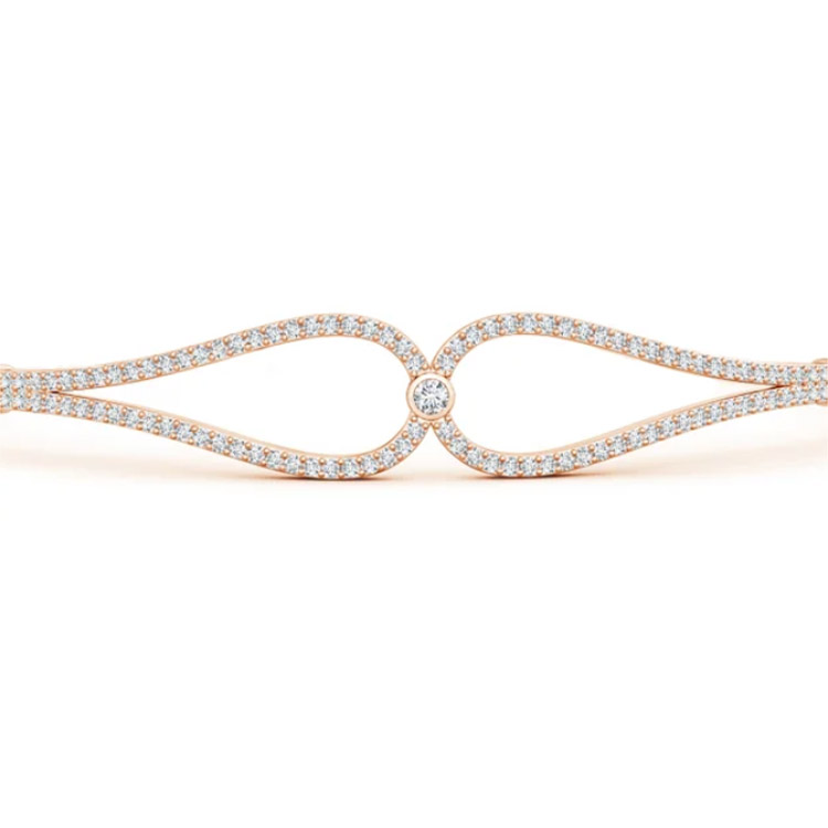 EPDA Collection 2.16 ct Prong-Set Round Diamond Teardrop Flex Tube Bangle in 18K Rose Gold