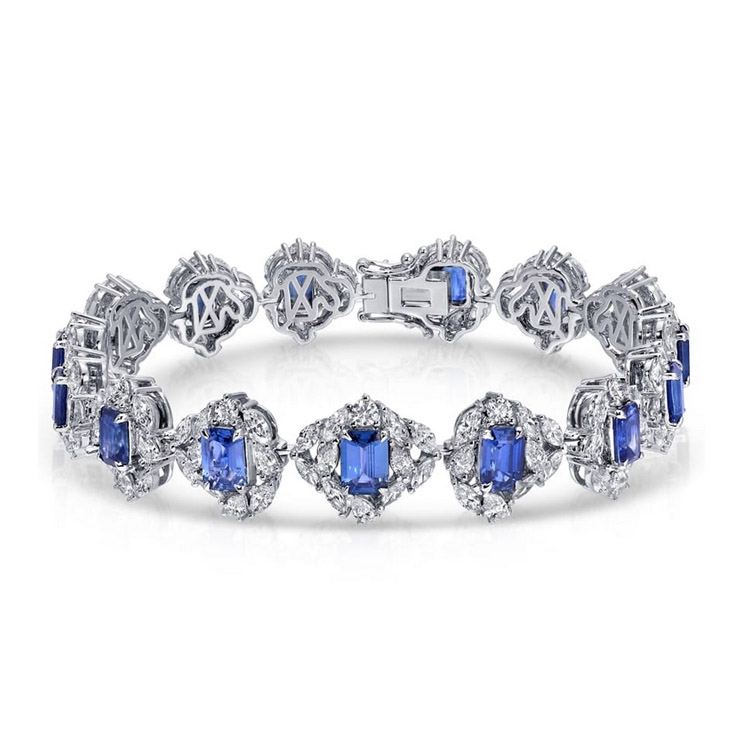 EPDA Collection - 16.08ct Emerald Cut Blue Sapphire with 8.16ct Diamonds Classic Diamond Bracelet in 18K White Gold