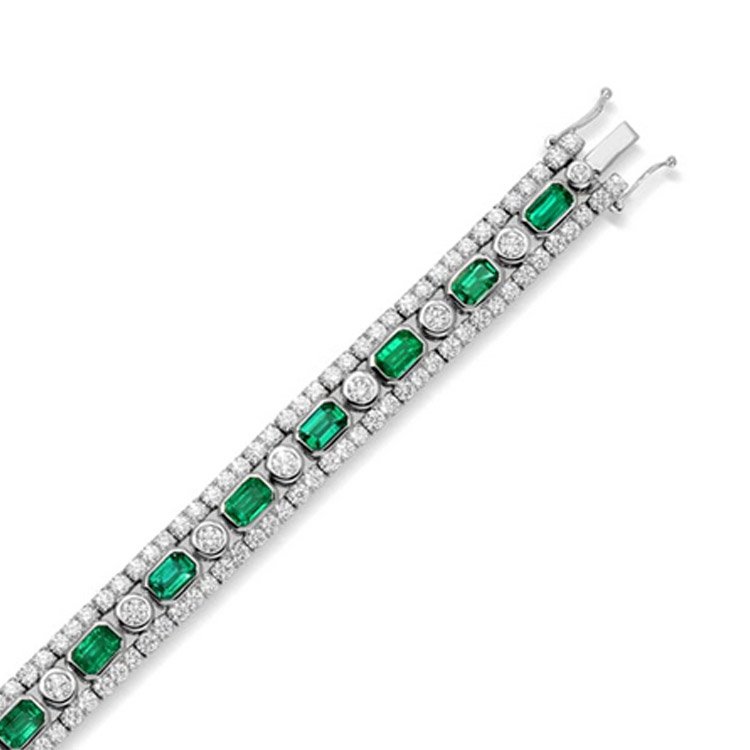 EPDA Collection - 12.09ct Emerald and 9.74 ct Round Diamond Classic Diamond Bracelet set in 18K White Gold