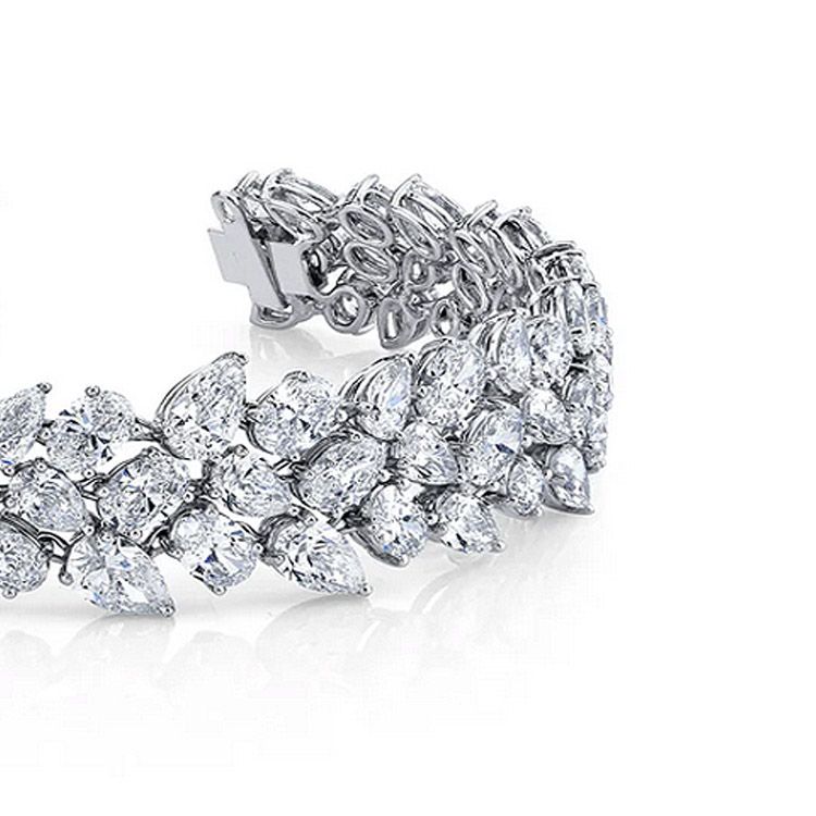 EPDA Collection - Stunning oval and pear diamonds with 31.73 Total Ct Wt Classic Diamond Bracelet crafted in 18K White Gold.